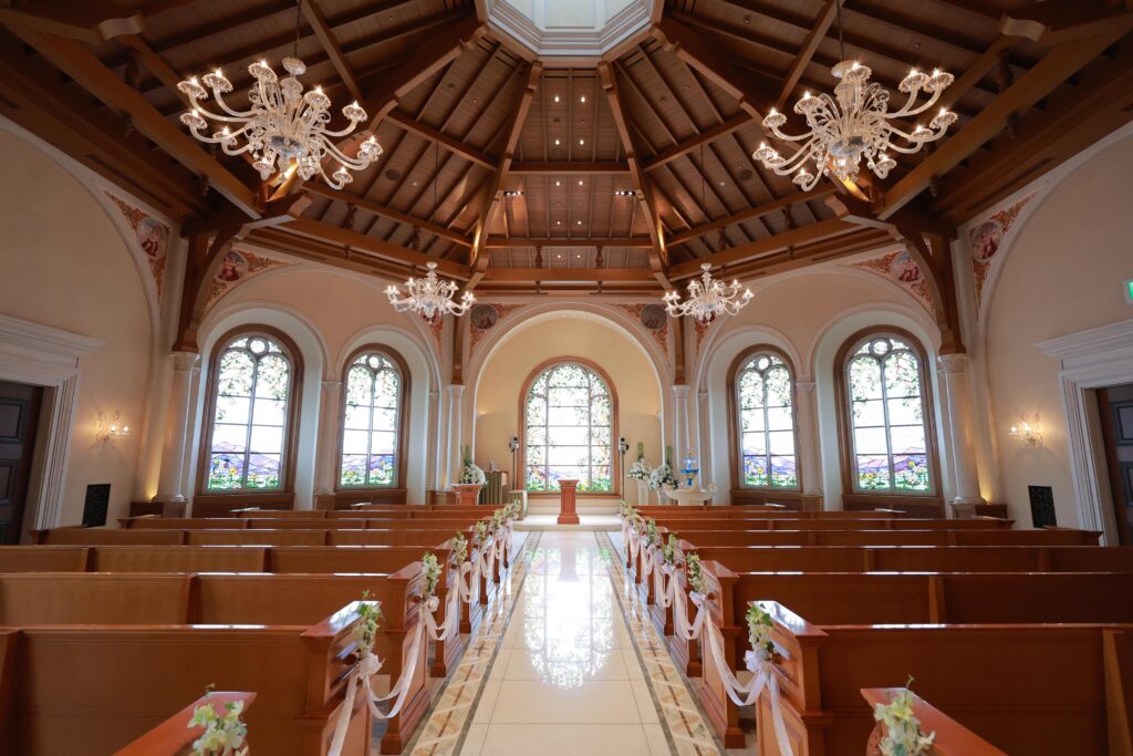 - 挙式が通常のキリスト様式とミラコスタオリジナルの人前式から選べる