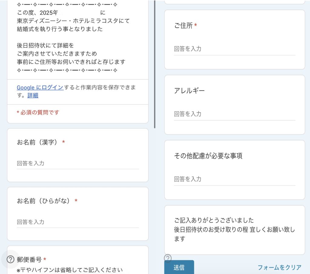 抜け漏れが発生する可能性があるので、私はGoogleフォームを使って確認をしました!